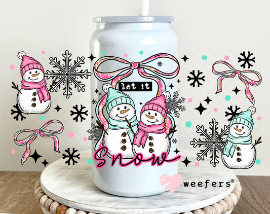 Let it Snow Pink and Blue Snowmen UV DTF Cup Wrap