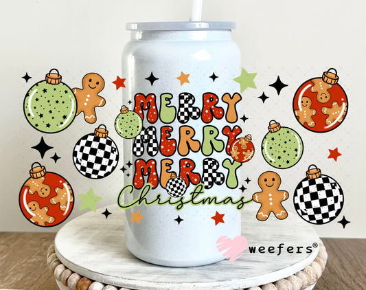 Merry Merry Merry Christmas Gingerbread and Christmas Balls UV DTF Cup Wrap