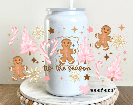 Tis the Season Pink Christmas Gingerbread and Trees UV DTF Cup Wrap