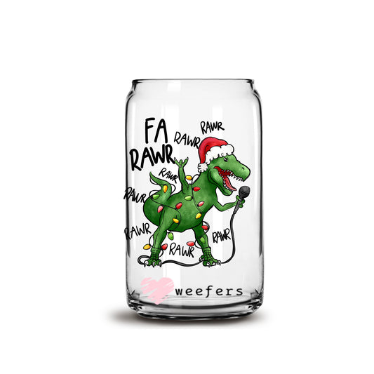 Fawr Rawr Rawr Christmas Dinosaur 16oz Libbey Glass Can UV DTF or Sublimation Cup Wrap - Decal Transfer