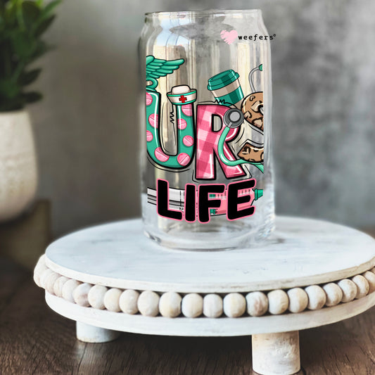 Nurse Life 16oz Libbey Glass Can UV DTF or Sublimation Cup Wrap - Decal Transfer