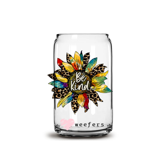 Be Kind Sunflower 16oz Libbey Glass Can UV DTF or Sublimation Cup Wrap - Decal Transfer