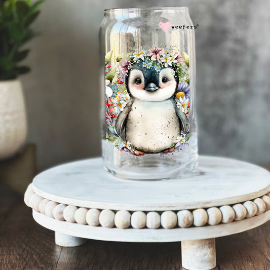 Floral Penguin 16oz Libbey Glass Can UV DTF or Sublimation Cup Wrap - Decal Transfer