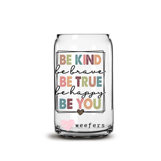Be Kind Be True Be You 16oz Libbey Glass Can UV DTF or Sublimation Cup Wrap - Decal Transfer