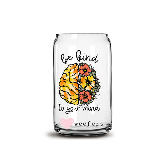 Be kind to Your Mind 16oz Libbey Glass Can UV DTF or Sublimation Cup Wrap - Decal Transfer