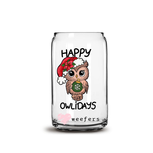 Happy Owlidays Christmas 16oz Libbey Glass Can UV DTF or Sublimation Cup Wrap - Decal Transfer