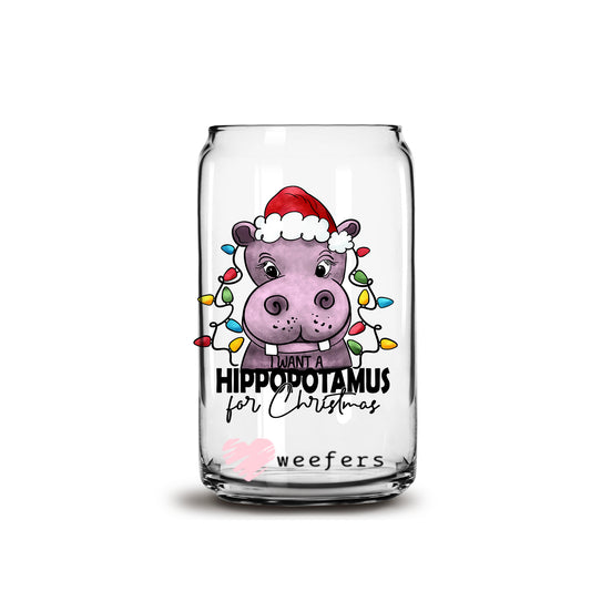 I Want a Hippopotamus for Christmas Giraffe 16oz Libbey Glass Can UV DTF or Sublimation Cup Wrap - Decal Transfer