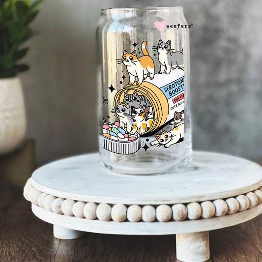 Cat lover Serotonin Booster 16oz Libbey Glass Can UV DTF or Sublimation Cup Wrap - Decal Transfer