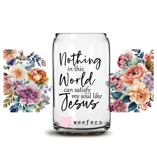 Nothing in this world can Satisfy My Soul Like Jesus Christian 16oz Libbey Glass Can UV DTF or Sublimation Cup Wrap - Decal Transfer