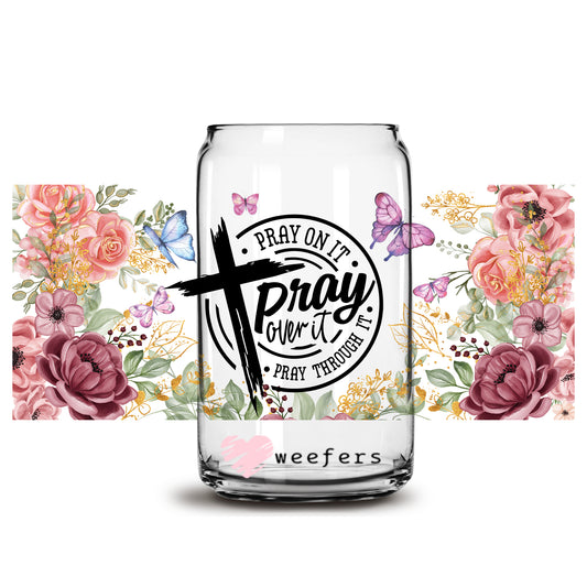 Pray on it Christian 16oz Libbey Glass Can UV DTF or Sublimation Cup Wrap - Decal Transfer