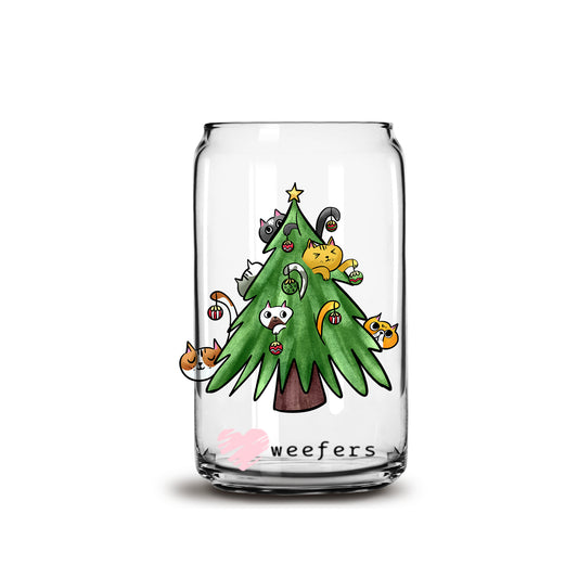 Christmas Tree Cats 16oz Libbey Glass Can UV DTF or Sublimation Cup Wrap - Decal Transfer