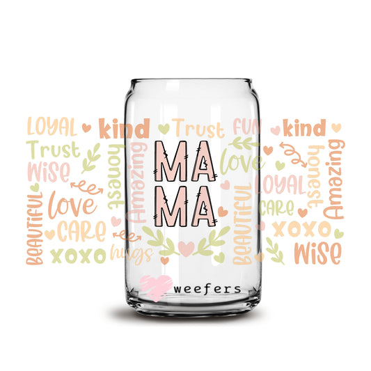 Peach and Green Mama Quotes 16oz Libbey Glass Can UV DTF or Sublimation Wrap - Decal