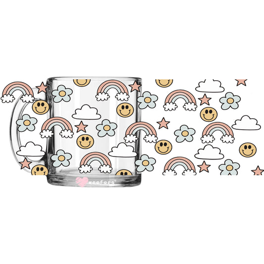 Retro Rainbows and Smile Faces 11oz Coffee Mug UV DTF or Sublimation Wrap - Decal