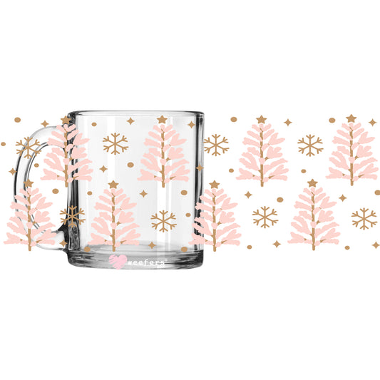 Blush Pink Christmas Trees 11oz Coffee Mug UV DTF or Sublimation Wrap - Decal