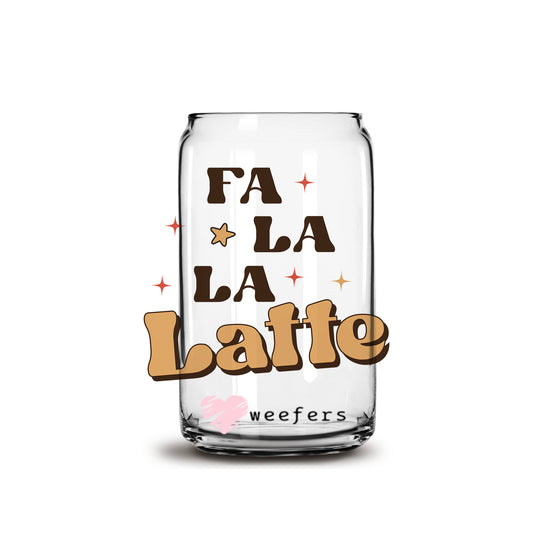 Fa La La Latte Christmas 16oz Libbey Glass Can UV DTF or Sublimation Wrap - Decal