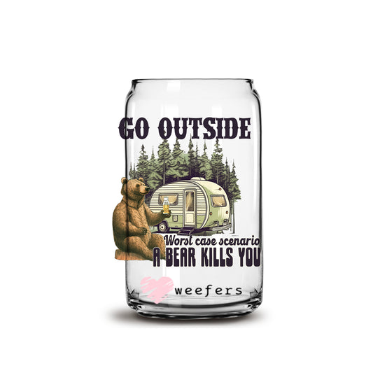 Funny Camping Go Outside 16oz Libbey Glass Can UV DTF or Sublimation Wrap - Decal