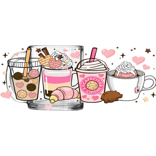 Pink Cafecito Coffee Latte 11oz Coffee Mug UV DTF or Sublimation Wrap - Decal