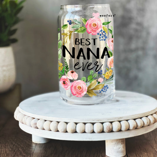 Best Nana Ever Floral Wreath 16oz Libbey Glass Can UV DTF or Sublimation Wrap - Decal