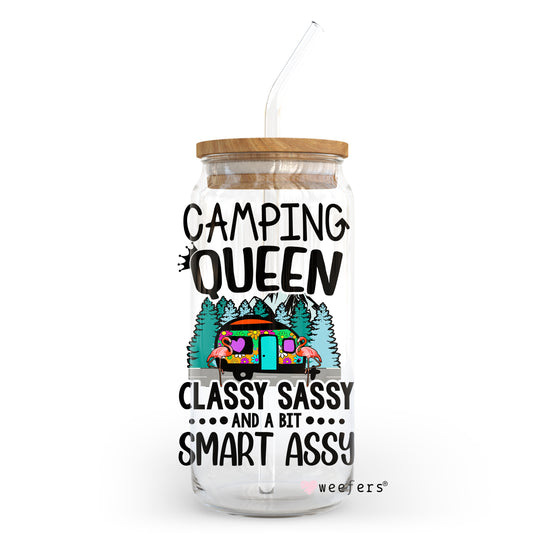 Camping Queen 20oz Libbey Glass Can, 34oz Hip Sip, 40oz Tumbler UV DTF or Sublimation Decal Transfer