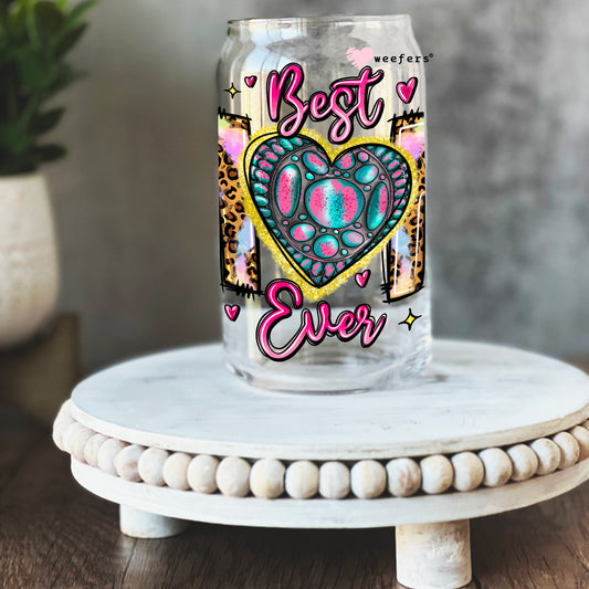 Best Mom Ever Heart 16oz Libbey Glass Can UV DTF or Sublimation Wrap - Decal