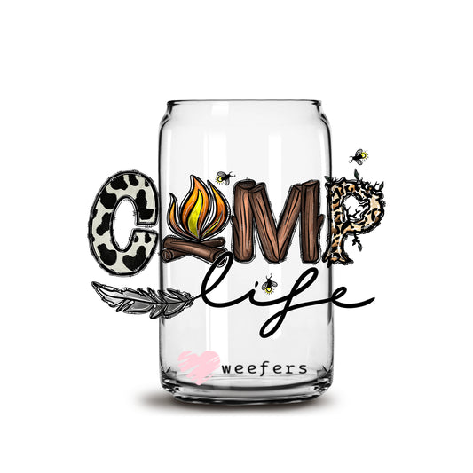 Camp Life 16oz Libbey Glass Can UV DTF or Sublimation Wrap - Decal