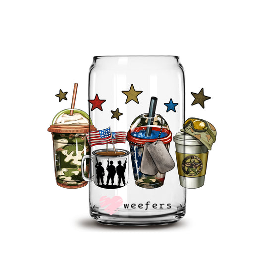 Military Coffee Latte 16oz Libbey Glass Can UV DTF or Sublimation Wrap - Decal