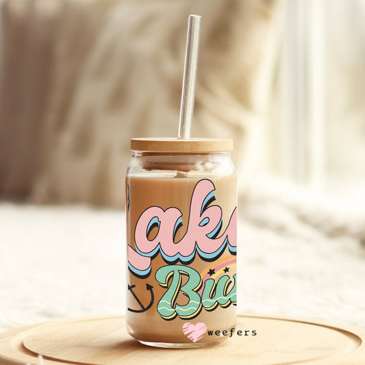 Retro Lake Babe 16oz Libbey Glass Can UV DTF or Sublimation Wrap - Decal