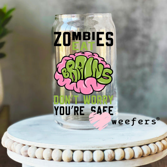Zombies Eat Brains Don't Worry You are Good White UV DTF Decal