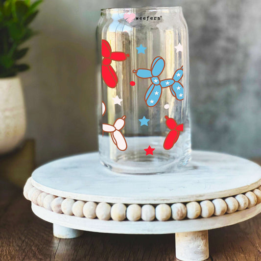 4th of July Balloon Dogs 16oz Libbey Glass Can UV DTF or Sublimation Wrap - Transfer