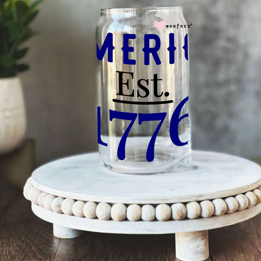 4th of July America EST. 1776 16oz Libbey Glass Can UV DTF or Sublimation Wrap - Decal
