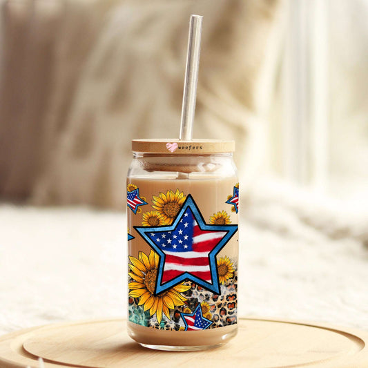 4th of July Coffee Latte 16oz Libbey Glass Can UV DTF or Sublimation Wrap - Decal