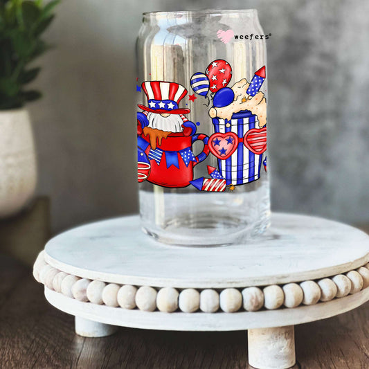 4th of July Gnomes 16oz Libbey Glass Can UV DTF or Sublimation Wrap - Decal