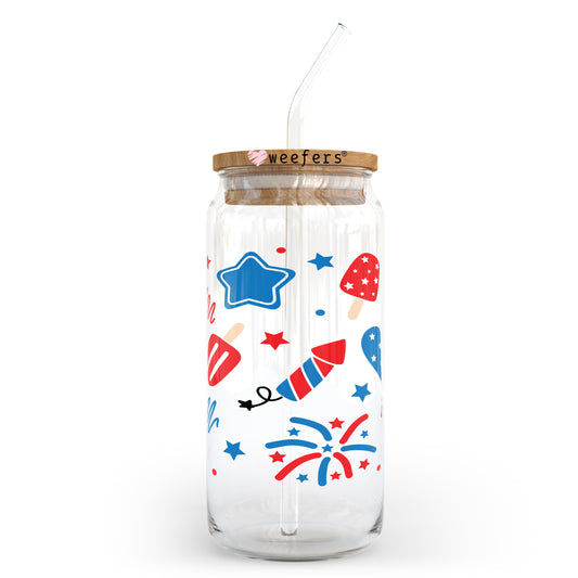 4th of July Fireworks Blast 20oz Libbey Glass Can UV DTF or Sublimation Wrap Transfer