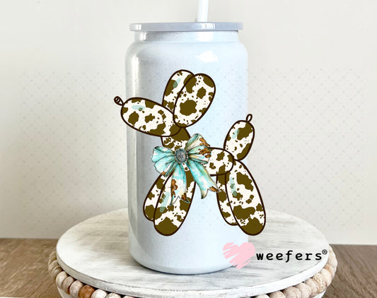 Brown Cow Print Balloon Dog Teal Bow UV DTF Cup Wrap - Weefers Exclusive