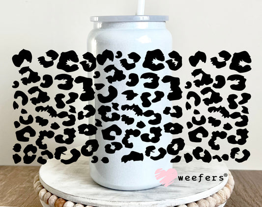 Black Cheetah Print 16oz Libbey Glass Can UV DTF or Sublimation Wrap - Decal