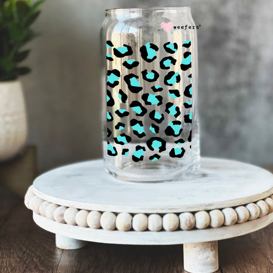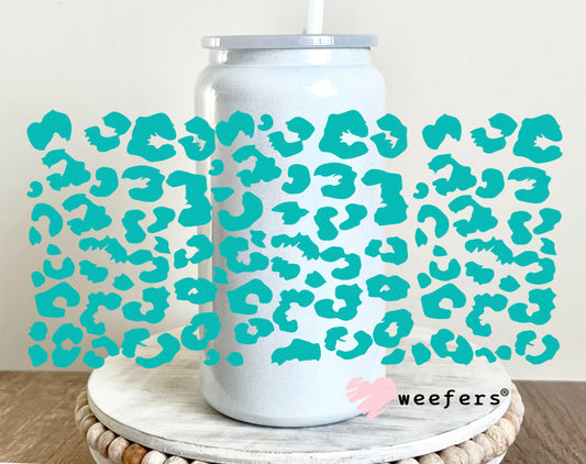 Turquoise Leopard 16oz Libbey Glass Can UV DTF or Sublimation Cup Wrap - Decal Transfer