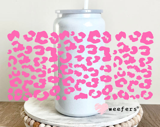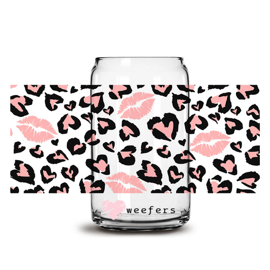 Pink and Black Leopard Lips 16oz Libbey Glass Can UV DTF or Sublimation Wrap - Decal