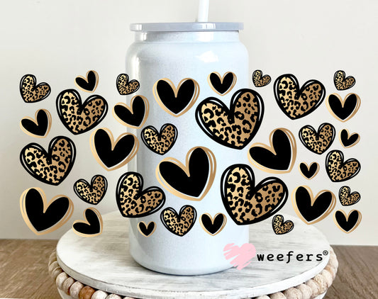 Gold and Black Leopard Hearts UV DTF Cup Wrap