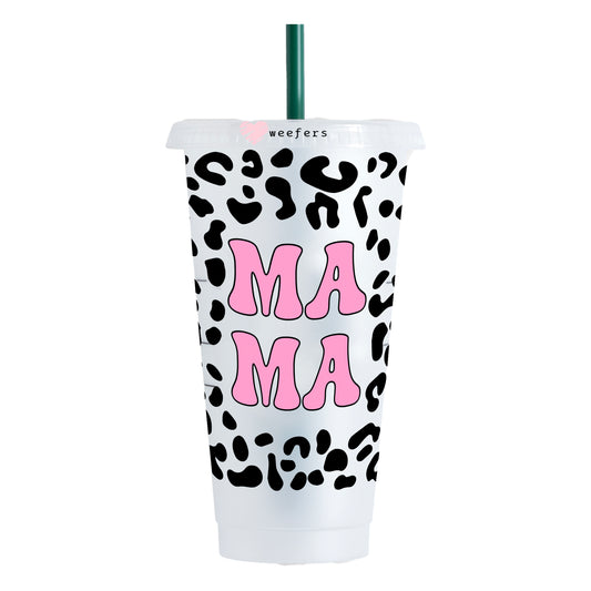 Pink MAMA and Black Leopard NO HOLE 24oz Cold Cup UV DTF Wrap - Ready to apply Wrap
