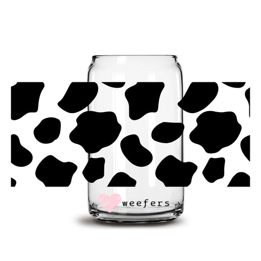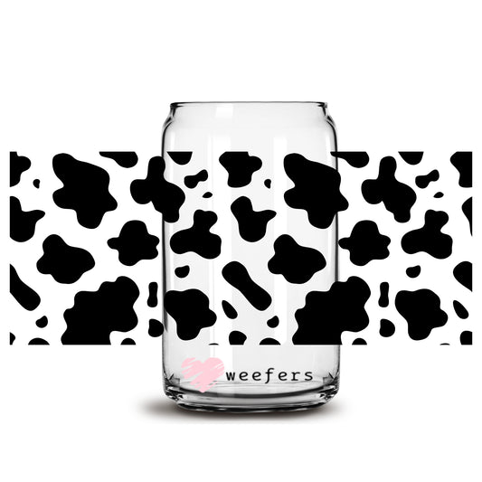 Black Cow Print 16oz Libbey Glass Can UV DTF or Sublimation Wrap - Decal