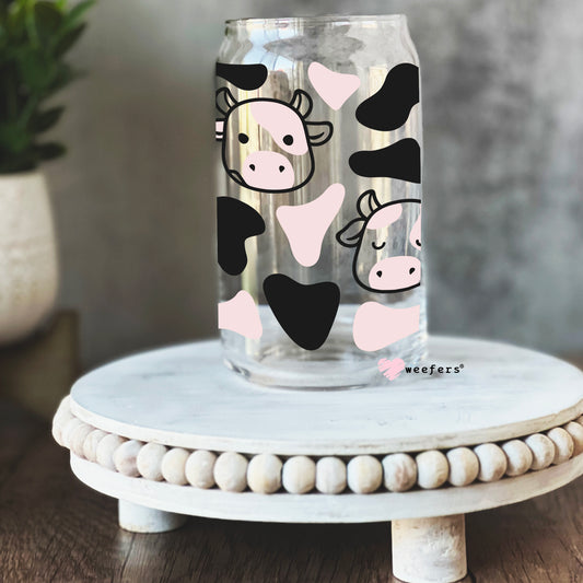 Pink Cow Print Libbey Glass Can UV DTF or Sublimation Wrap - Decal