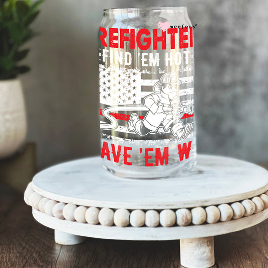 Fire Fighters Leave them Wet 16oz Libbey Glass Can UV DTF or Sublimation Decal
