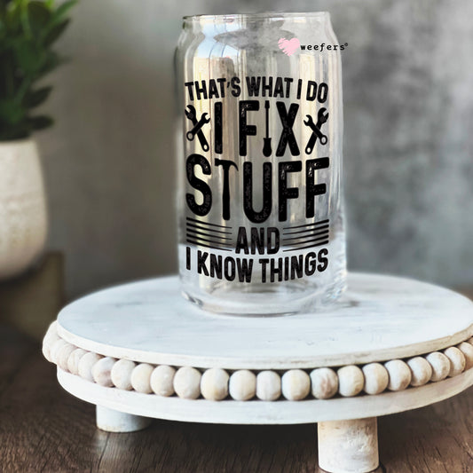 That's What I Do I fix Stuff 16oz Libbey Glass Can UV DTF or Sublimation Cup Wrap - Decal Transfer