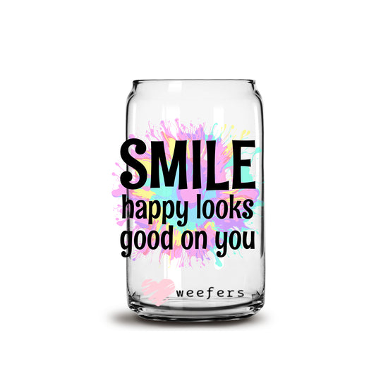 Smile Happy Looks Good on You 16oz Libbey Glass Can UV DTF or Sublimation Wrap - Decal