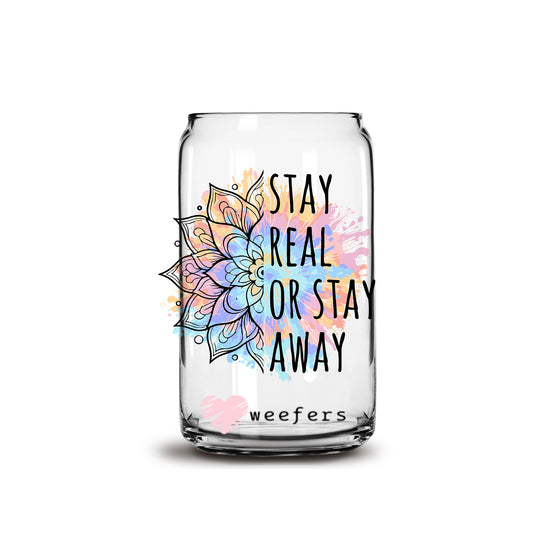 Stay Real or Stay Away 16oz Libbey Glass Can UV DTF or Sublimation Wrap - Decal