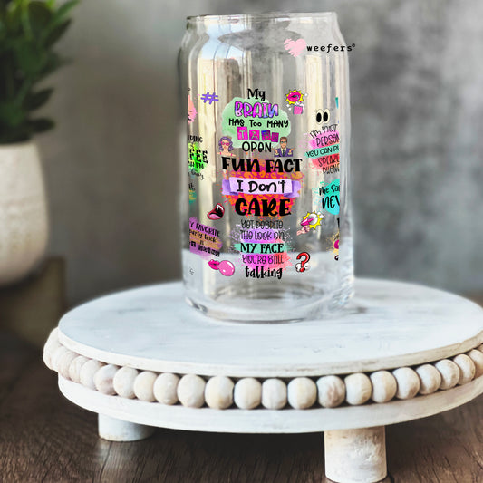 Fun Fact I don't Care 16oz Libbey Glass Can UV DTF or Sublimation Wrap - Decal