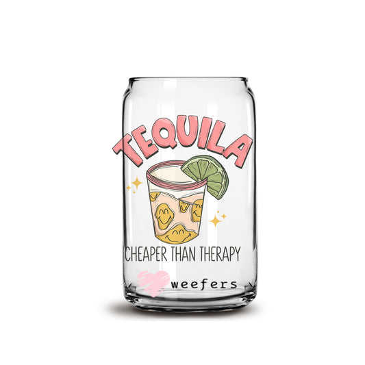 Tequila Cheaper than Therapy 16oz Libbey Glass Can UV DTF or Sublimation Wrap - Decal