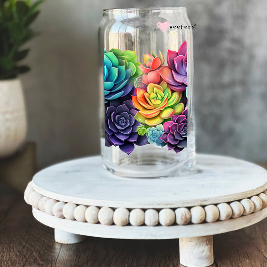 Colorful 3D Succulent 16oz Libbey Glass Can UV DTF or Sublimation Wrap - Decal