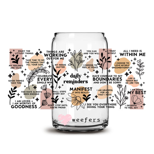 Daily Reminders Non Vulgar Version 16oz Libbey Glass Can UV DTF or Sublimation Wrap - Decal