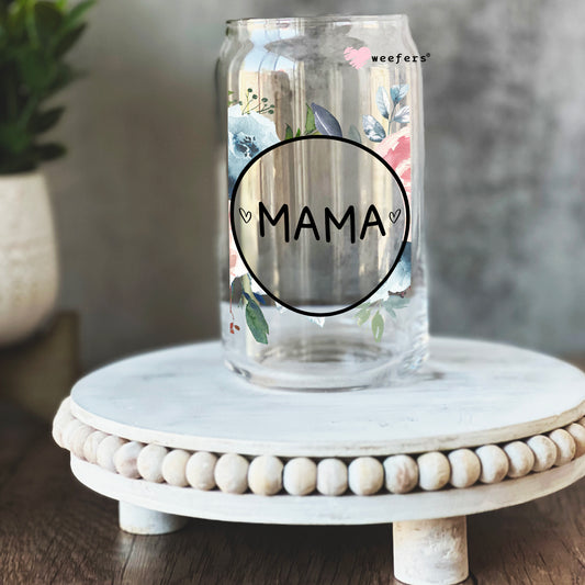 Mama Pinks and Blues Floral 16oz Libbey Glass Can UV DTF or Sublimation Wrap - Decal